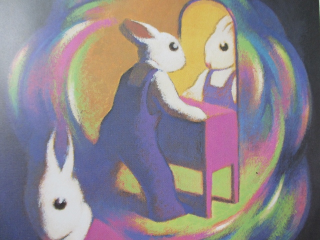 鏡を見つめる、バニーが、自分に見えます。